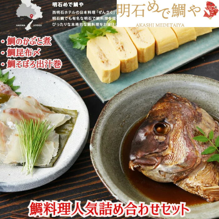 鯛料理人気詰め合わせセット(鯛のかぶと煮・鯛昆布〆・鯛そぼろ出汁巻) 鯛 明石めで鯛や名物 取り寄せ お土産 お祝い プレゼント ギフト おすすめ 〈クール冷蔵便〉熨斗対応 ギフト対応 贈答 敬老の日 お誕生日 お祝い お中元 御中元 中元