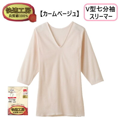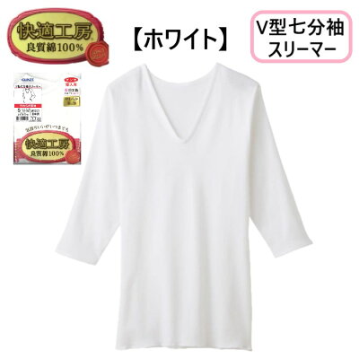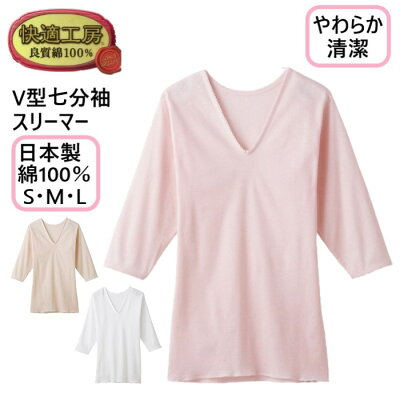 【グンゼ快適工房】 V型 七分袖 スリーマー 婦人 下着 肌着 インナー 良質綿100% 日本製 S M L GUNZE KH5046 ホワイト ベージュ ライトピンク 抗菌防臭