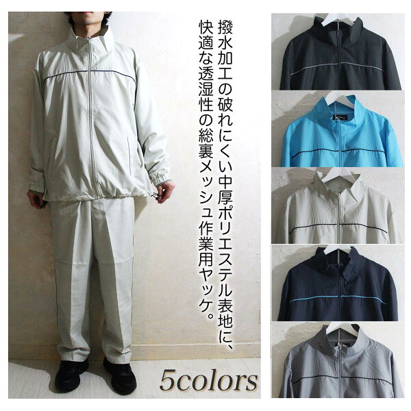 サイズ M L LL 着丈 67 68 70 身巾 58 60 63 袖丈 58 59 61 総丈 97 99 103 渡り巾 33 34 35 商品詳細 商品名 総裏メッシュ 中厚ポリエステル作業用ヤッケ上下セット[カラー:全5色] 素材 ポリエステル100%[表地:撥水加工/ 内側:総メッシュ](※防水加工のレインウェアではありません。