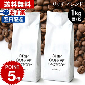 【あす楽】送料無料 自家焙煎 コーヒー リッチ ブレンド 1kg ( 500g × 2袋 ) ( コーヒー豆 コーヒー粉 珈琲 ) | 日本1位焙煎士監修( ドリップ コーヒー ファクトリー )