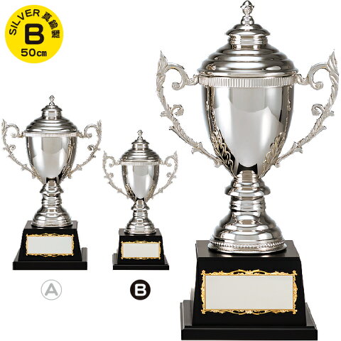 高級優勝カップ シルバー 金属製 57cm 2サイズ 紅白リボン付 名入れ 持ち回り レプリカ ゴルフ 野球 サッカー 表彰 賞品 大会 コンペ イベント《送料無料・文字入無料》【KRS-08201 Aサイズ】高さ:57cm 口径:12cm 総巻