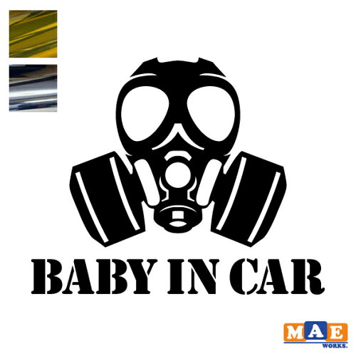 自動ドア 注意喚起 注意 窓 窓ガラス ガラス ワンポイントに ウォールステッカー がオススメ!この商品は 金銀メッキカラー ベビーインカ— カッティングステッカー BABY IN CAR ガスマスク 赤ちゃん 子供 車 シール IC-07m ポイント メッキゴールドもしくはメッキシルバーからお選びいただけます!かっこいい クール シンプル ファミリーカー ベビー関係の商品で珍しいクールなデザインのステッカーです。