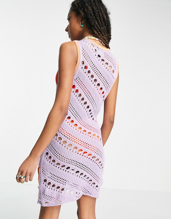 エイソス ASOS asos 非対称ボタンディテールのASOSDESIGNかぎ針編みミニドレス ワンピース レディース 女性 インポートブランド 小さいサイズから大きいサイズまで