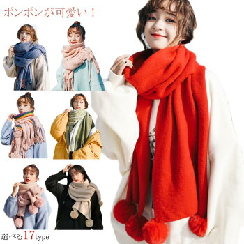 可愛いポンポン付き マフラー ストール レディース 学生 大判ストール ファー フェイクファー ショール カラフル おしゃれ 高校生 中学生 通学 通勤 フリンジ 秋冬